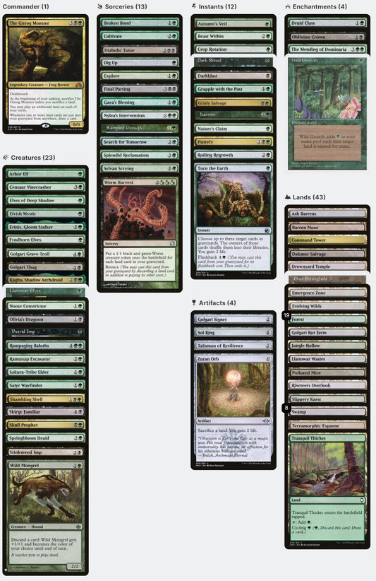 The Gitrog Monster Land Recursion Graveyard Landfall Magic MTG Commander Deck