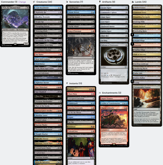 Wick, the Whorled Mind RAT TRIBAL SHAPESHIFTERS Magic MTG Custom Commander Deck