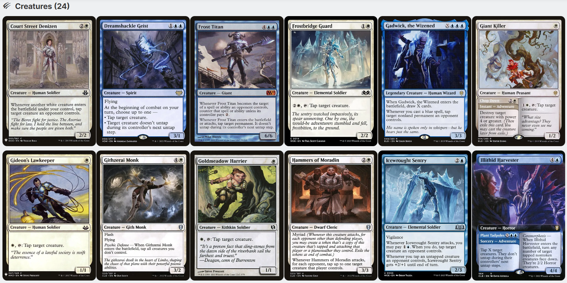 With much more than just one-shot tap abilities, the deck can build combo-like engines with Opposition, Junk Winder, or Court Street Denizen that will tap every enemy creature in play and leave you with a massive army, each and every turn.