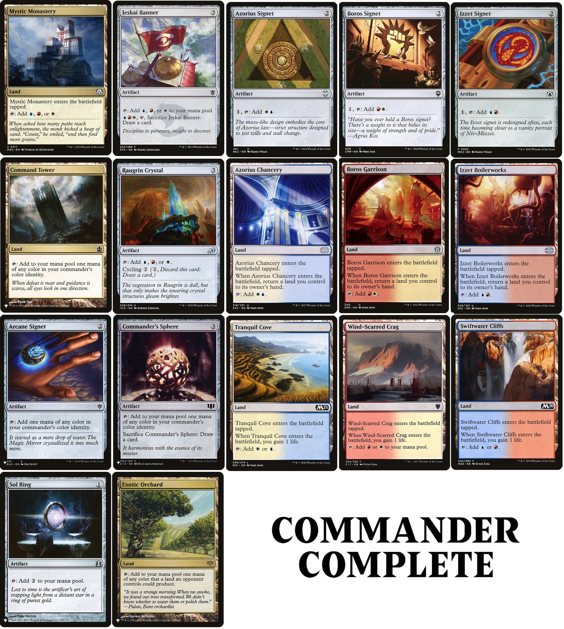 A complete 100-card Commander/EDH deck, made of authentic English-language Magic: the Gathering cards in near-mint to slightly played condition.