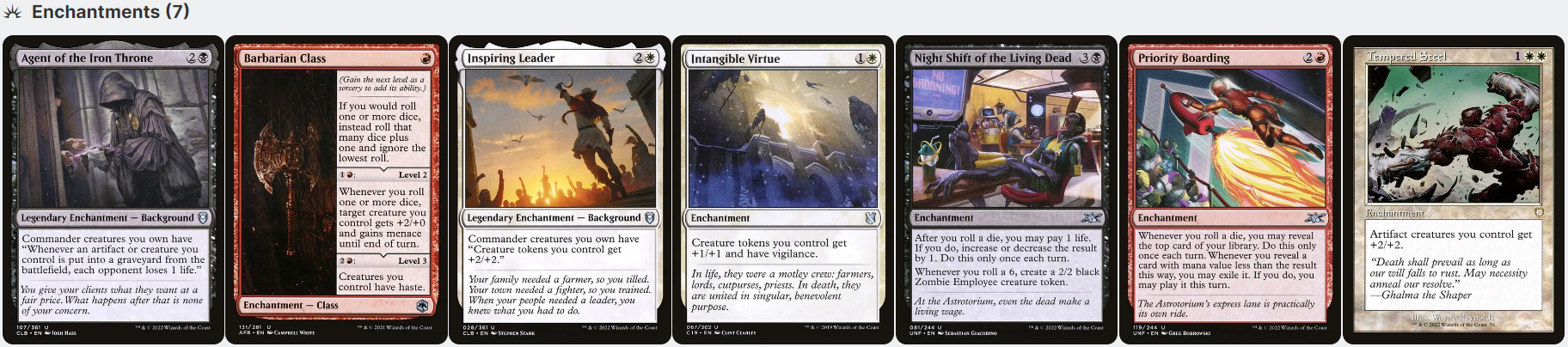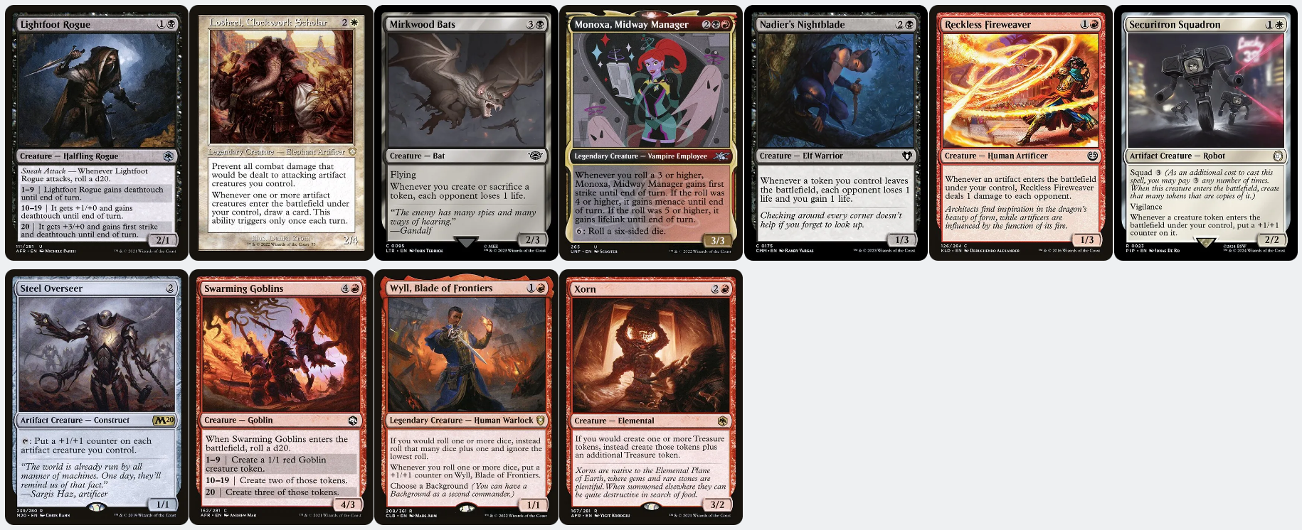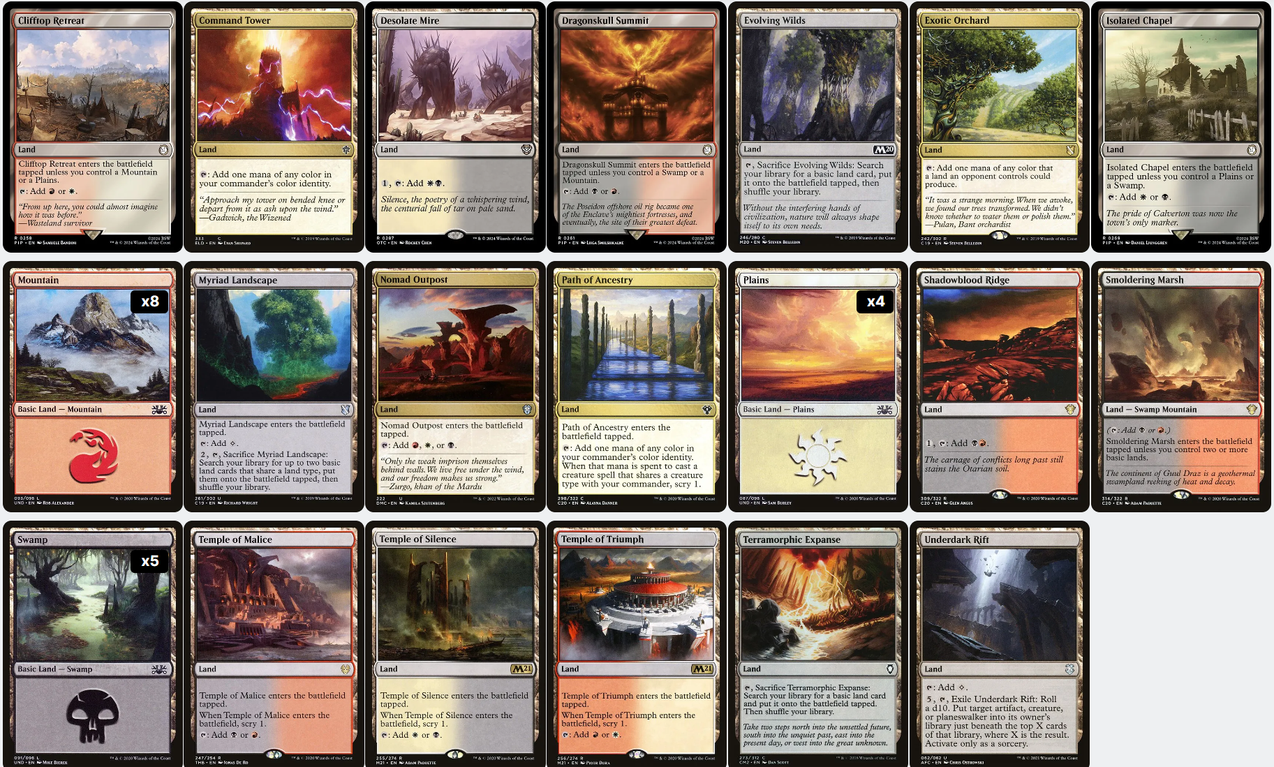 A complete 100-card Commander/EDH deck, made of authentic English-language Magic: the Gathering cards in near-mint to slightly played condition.