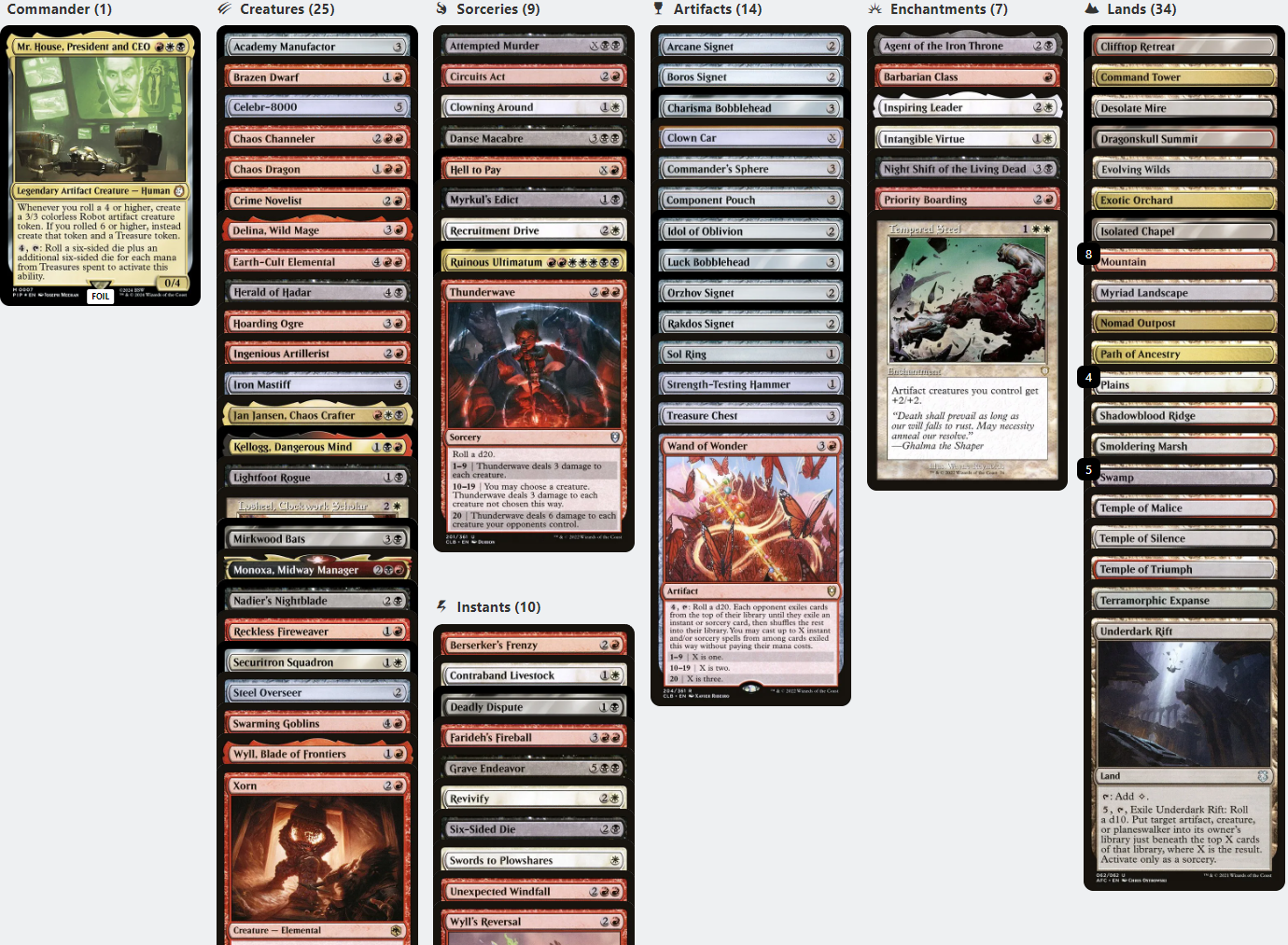 Mr. House, President and CEO DICE ROLLS TREASURE Fallout Magic MTG Custom Commander Deck