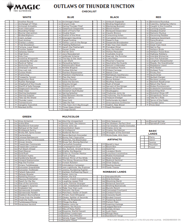 OUTLAWS OF THUNDER JUNCTION Complete Full Set Sealed Magic the Gathering MTG OTJ