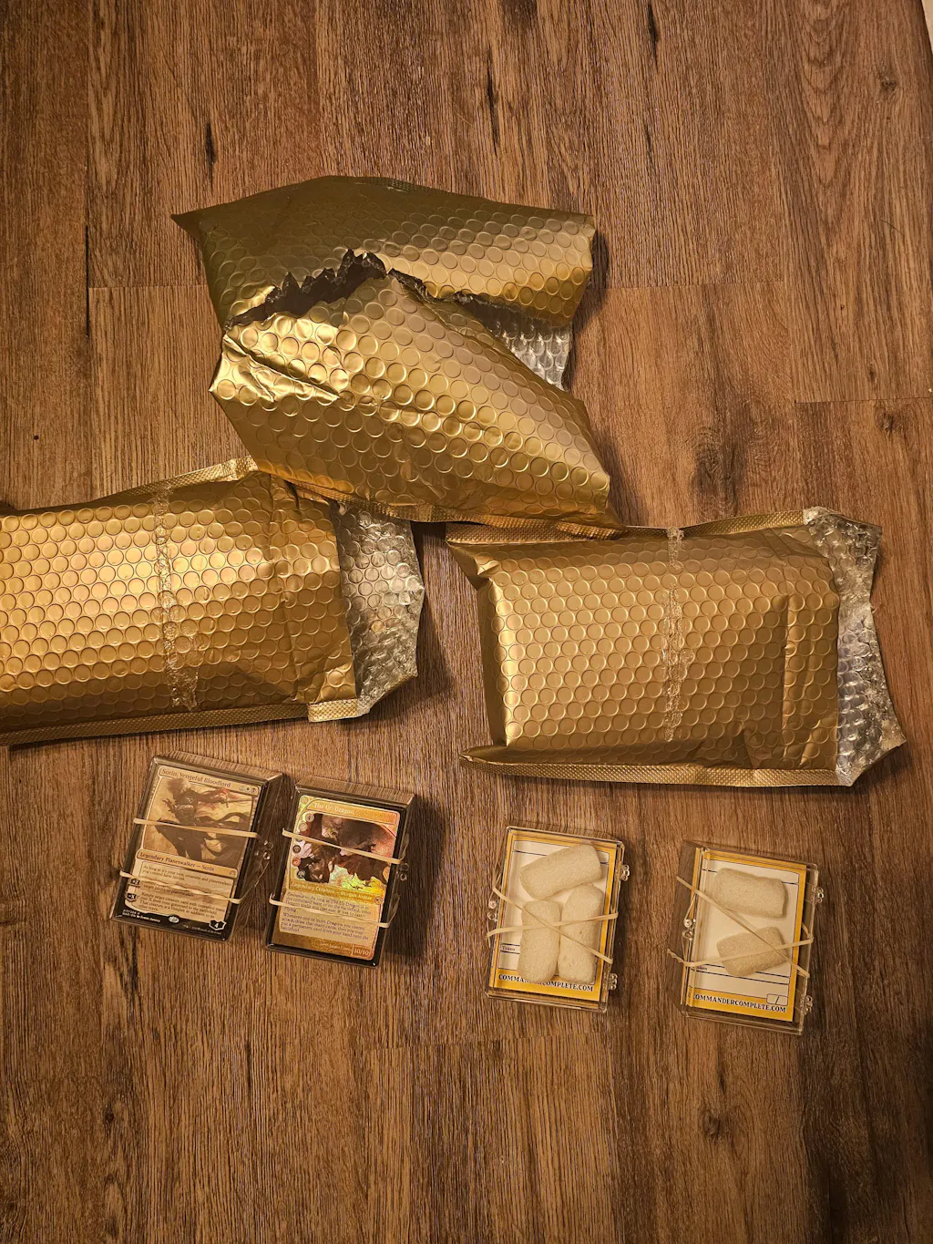 Your deck will arrive unsleeved in a protective box for secure shipping.